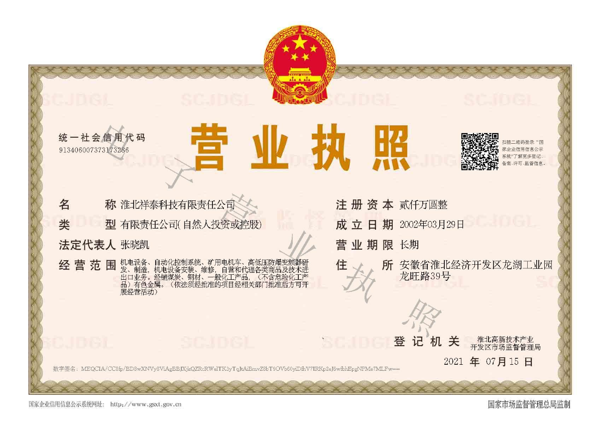 淮北祥泰科技有限責(zé)任公司是一家專(zhuān)業(yè)從事礦山自動(dòng)化、智能化裝備研發(fā)、制造的智能化高新技術(shù)企業(yè)。注冊(cè)資金2000萬(wàn)元,位于淮北市經(jīng)濟(jì)技術(shù)開(kāi)發(fā)區(qū)。公司通過(guò)了ISO90...